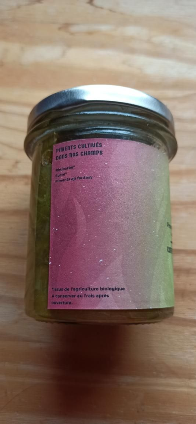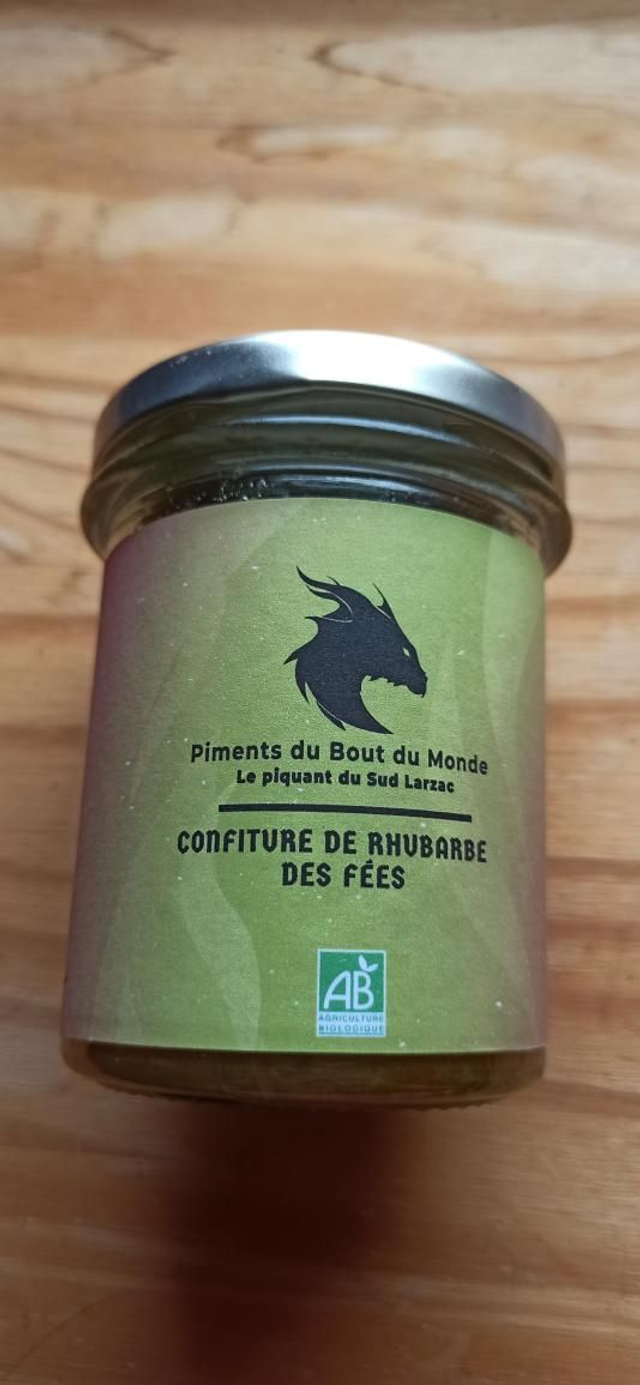 Confiture de rhubarbe bio issue de notre exploitation, parfumée avec une pincée de malice à la verveine elle aussi de l'exploitation,